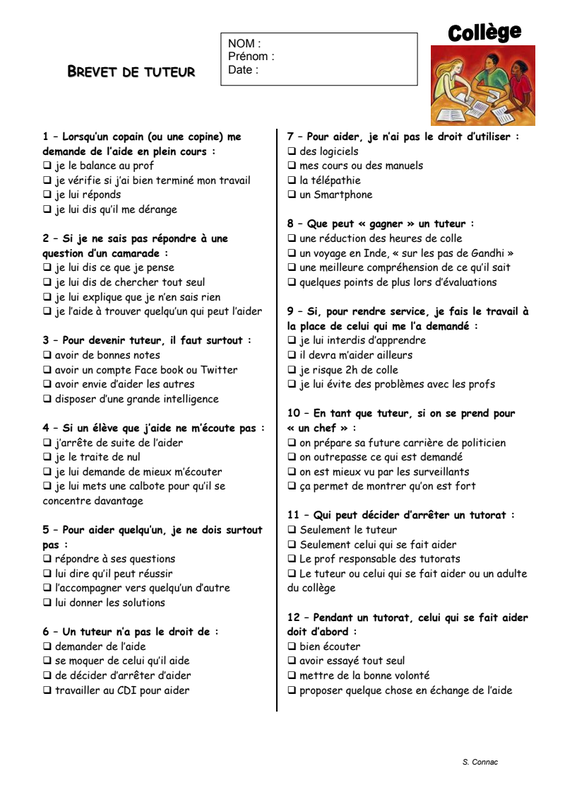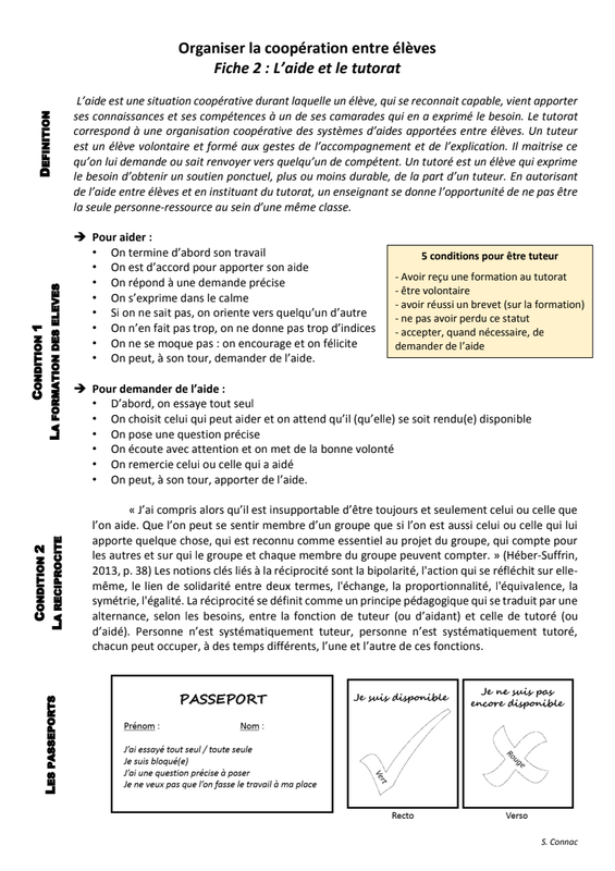 Connac Organiser La Cooperation Entre Eleves Fiche 2 L Aide Et Le Tutorat